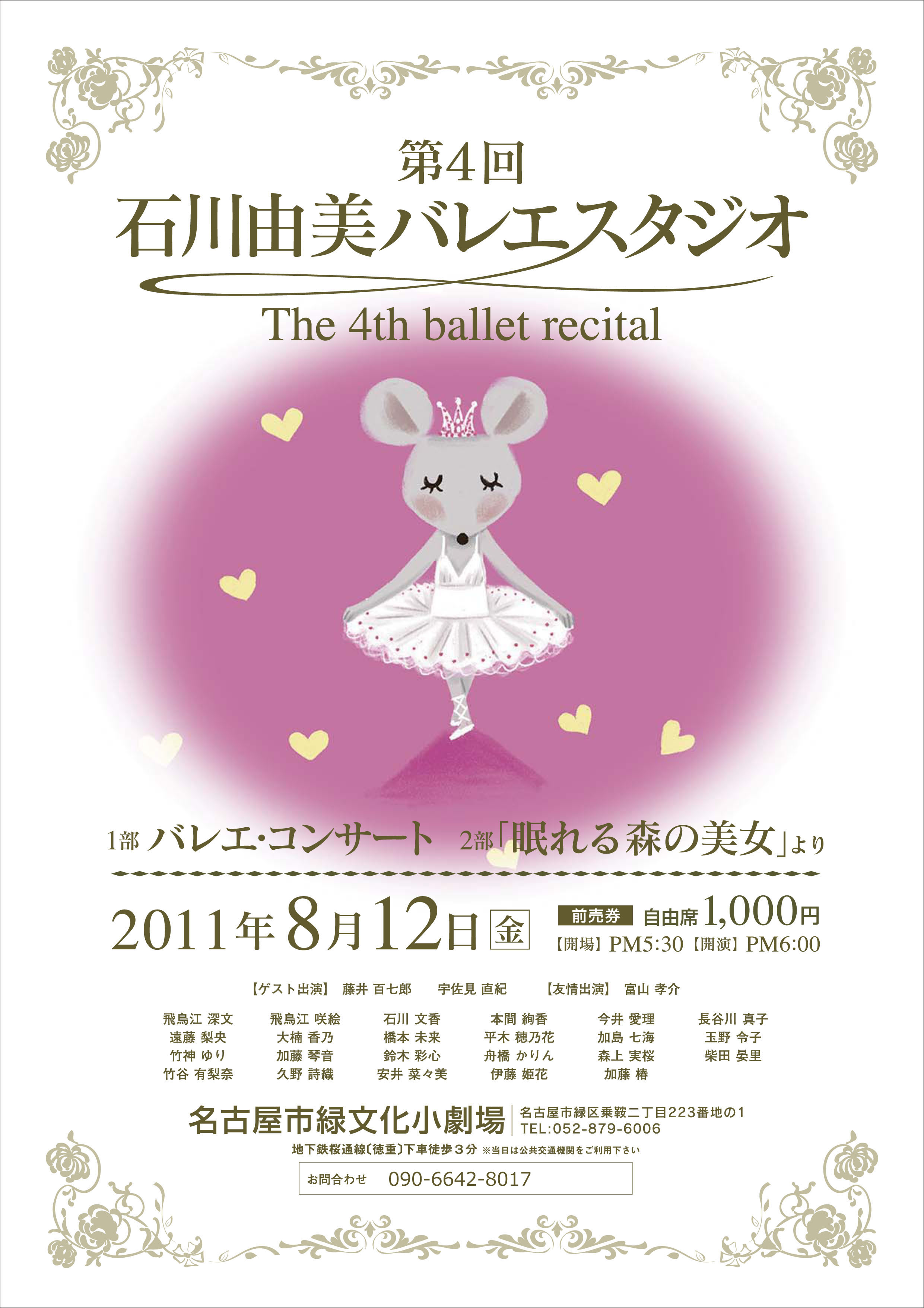 代表 石川由美6才よりモダンバレエを始める。 17才 モダンバレエの名取りとなり、 初めて金平糖のヴァリエーションを踊る。 17才 クラシックバレエを始める。 21才 第2回「はばたくバレリーナたち」に参加し「ドン・キホーテ」よりキトリのグラン・パ・ド・ドゥを踊る。シンガポール、マレーシア、中国公演などに参加。おもに「海と真珠」、「白鳥の湖」より婚約姫、四羽、三羽など「パリの喜び」ではオペラスター etc・・・ 2007年4月 石川由美バレエスタジオを開く 2008年8月 第一回石川由美バレエスタジオ発表会 ・ 2011年8月 第四回石川由美バレエスタジオ発表会 ・ 2016年8月 第九回石川由美バレエスタジオ発表会 |